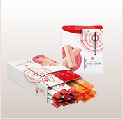 To evolve traditional Baumkuchen to a new confectionery, Baumkuchen dough is cut into stick-shaped pieces and baked until golden brown. Each piece is finished to have a crispy texture like a cookie.